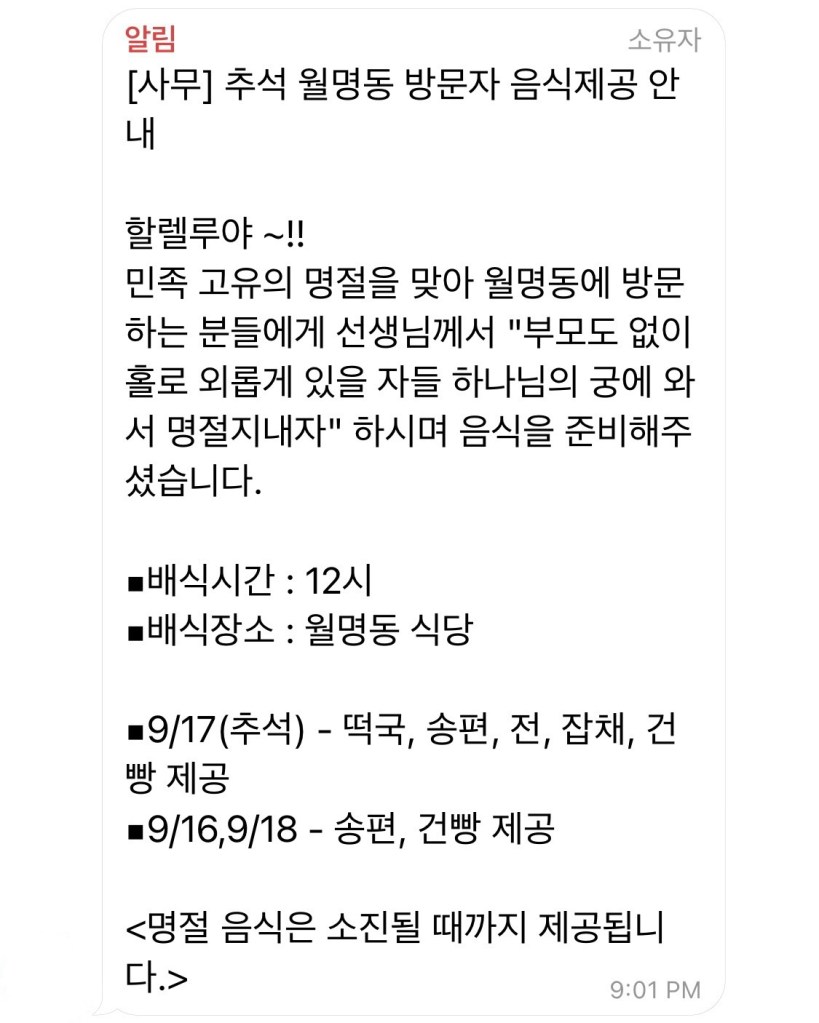 명절이 되면 늘 선교회로부터 받는 메세지가 있다.